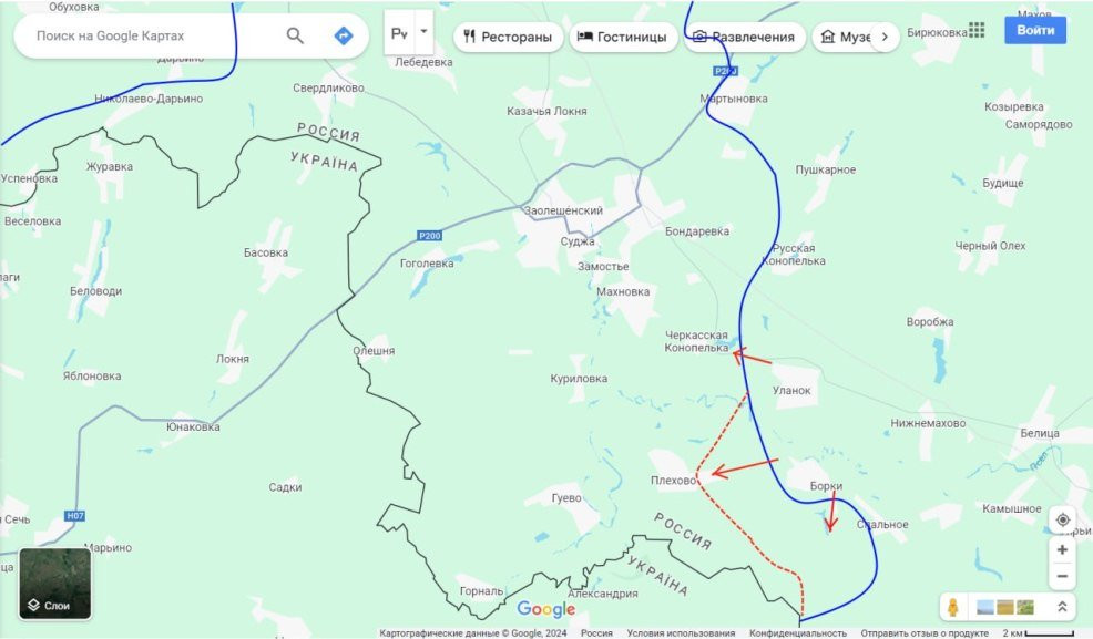 В Курской области на севере с нашей стороны идут попытки полностью взять под свой контроль н.п. Любимовка, Николаево-Дарьино и Дарьино. Смысл их понятен - создать угрозу коммуникациям противника и создать предпосылки для дальнейшего движения на линию Зеленый Шлях, Свердликово.
