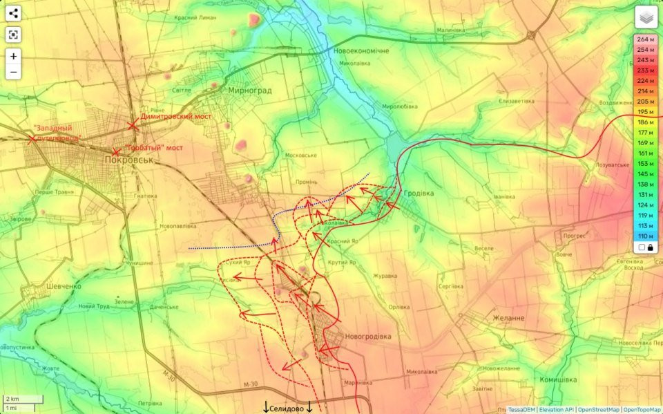 На Покровском направлении продолжаются бои за линию высот южнее Мирнограда. Противник, даже потеряв некоторые позиции, отчаянно цепляется за оставшиеся.