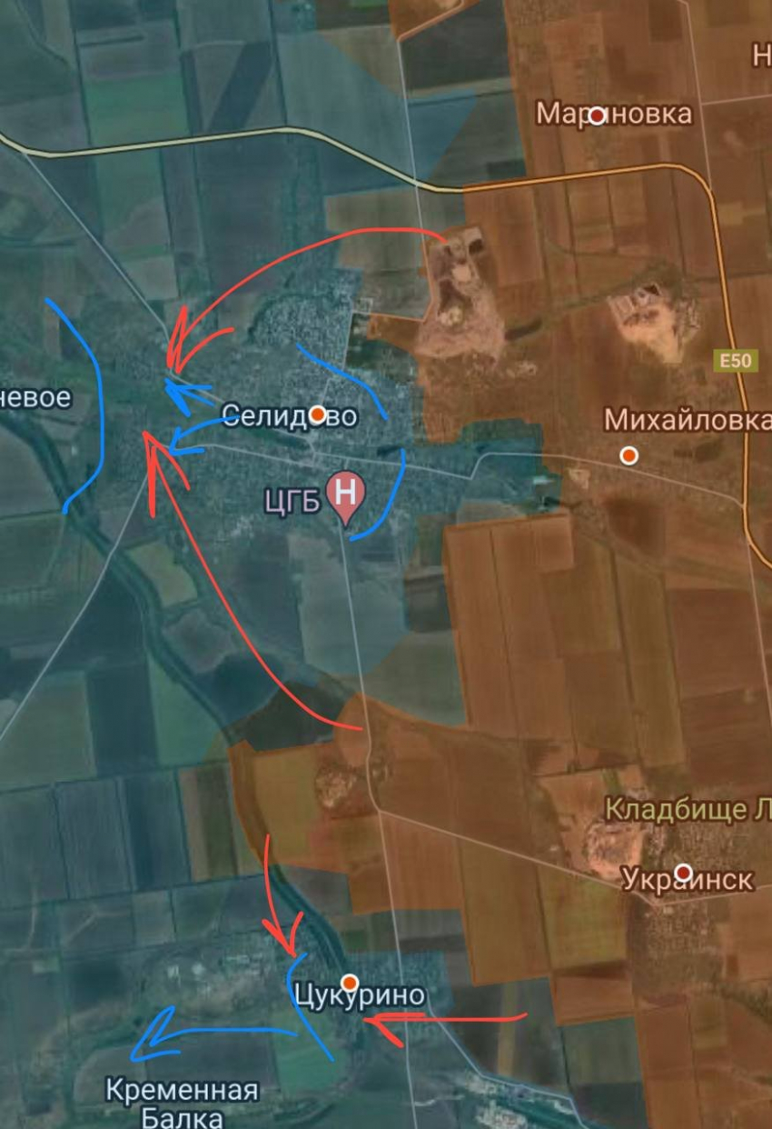 Тем временем, населенный пункт Селидово повторяет судьбу Угледара. Сил и средств удерживать огромный фронт от Великой Новоселовки до Курахово и Селидово у ВСУ нет. На оборону Красноармейска (Покровска) брошены все резервы Донецкого направления противника.