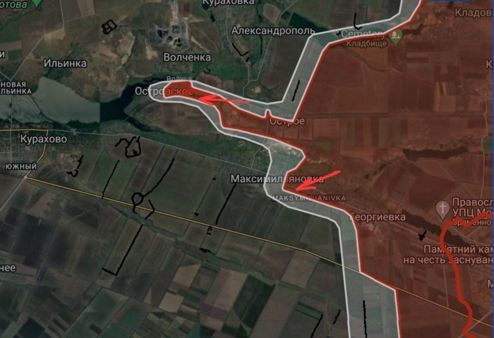 На Кураховско-угледарском направлении под контроль ВС РФ перешло Островское. Продолжаются встречные бои районе железнодорожной платформы Острый. В Максимильяновке российские войска ведут штурмовые действия в западном направлении.
