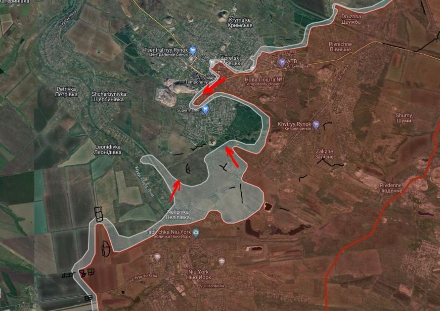 ВС РФ ведут штурмовые действия в центре Торецка, имеются тактические успехи в районе Центрального парка, давят вдоль ул. Героев Труда в направлении ул. Мирная.