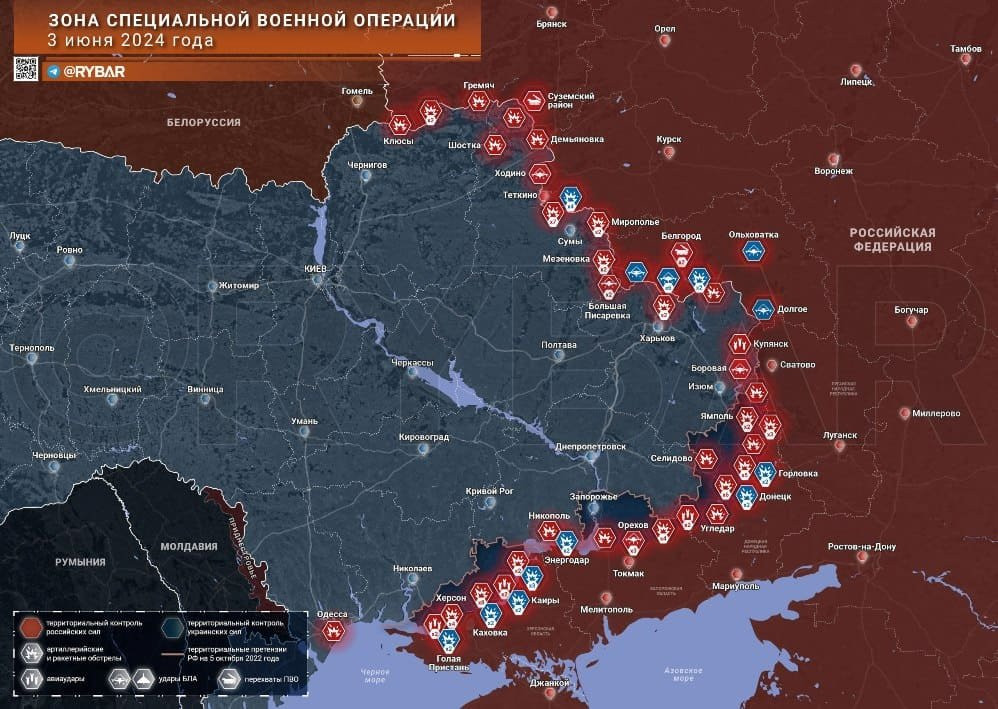 Последние новости СВО на 4 июня 2024. Карта боевых действий на Украине на сегодня, ситуация на фронтах
