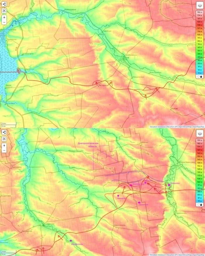 Также они пытаются прорвать оборону ВСУ севернее Ровнополя, чтобы затем перерезать трассу из Большой Новосёлки на Гуляйполе и выйти в район Времеевки.