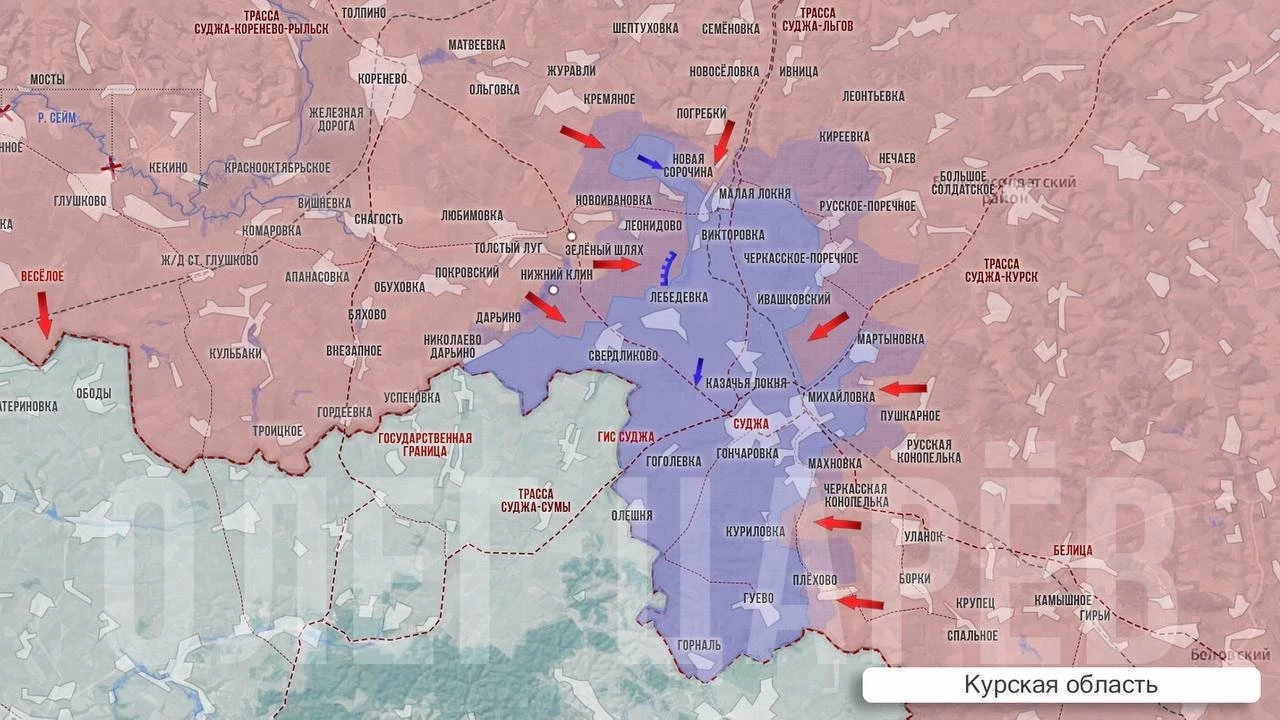 Выше по линии соприкосновения, в Новоивановке, Зеленом Шляхе, Леонидово наши части каждый день отражают атаки ВСУ. Возле Малой Локни противник тоже контратаковал, задействовал бронетехнику, но успеха не достиг, наши рубежи удержали. В Погребках без изменений и пока некоторая пауза: ВСУ прекратили попытки отбросить наши силы от села.