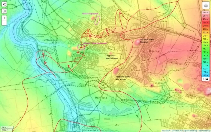 «Мы продвинулись как в центре города, в сторону шахты «Торецкая», так и в районе Забалки, приближаясь к терриконам шахты «Центральная». В северной части города наши войска уже прошли высотную застройку и вошли в районы с малоэтажными домами», - проинформировал он.
