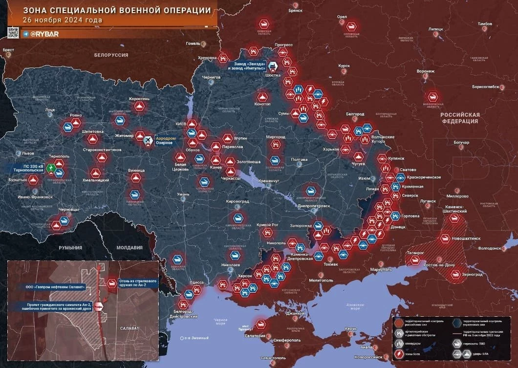 Обзор событий на фронтах специальной военной операции (СВО) на Украине, последние новости от 27 ноября 2024 года, а также свежие карты боевых действий - в материале сайта N4k.