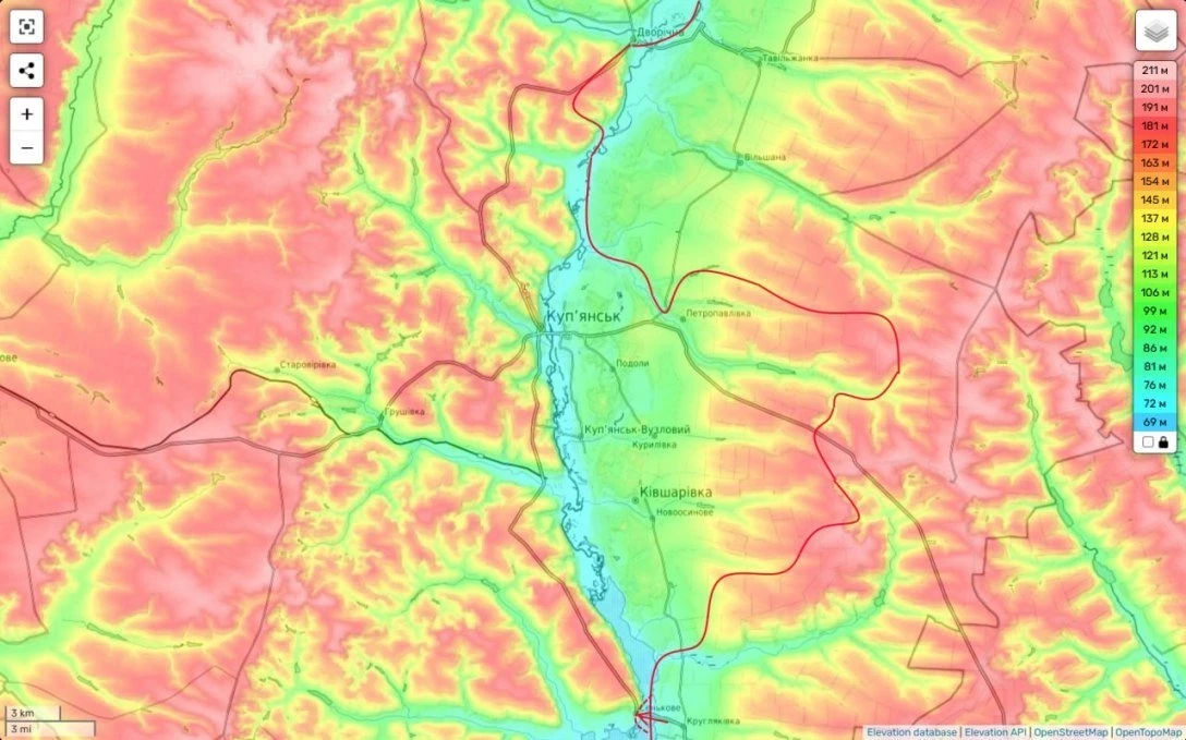 "Наши части южнее Купянска похоже пытаются создать еще один плацдарм. В районе населённого пункта Синьково. Если удастся, это будет здорово", - сообщил Подоляка.