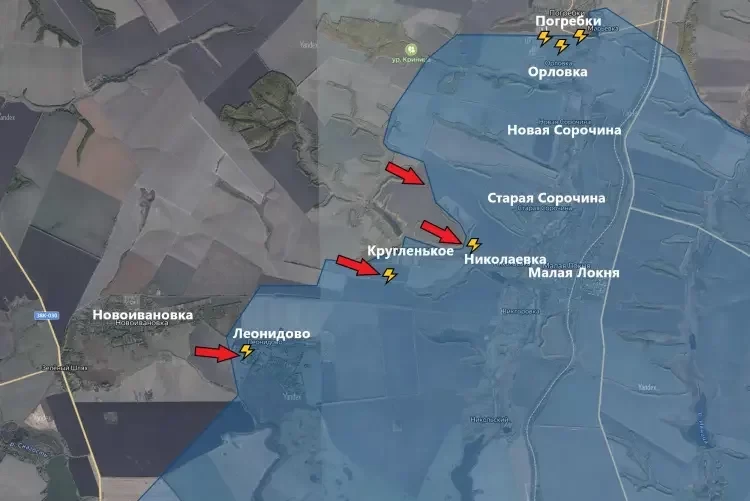 Российские войска опорой на Новоивановку давят в направлении Леонидово.