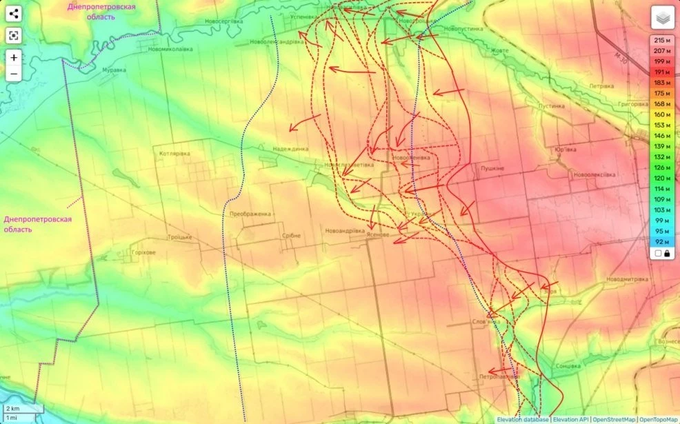 Таким образом, как мы видим и центральная часть фронта обороны ВСУ заметно проседает. И согласно вчерашних данных гауляйтера Покровска, до городской застройки нам осталось пройти менее 2 км.