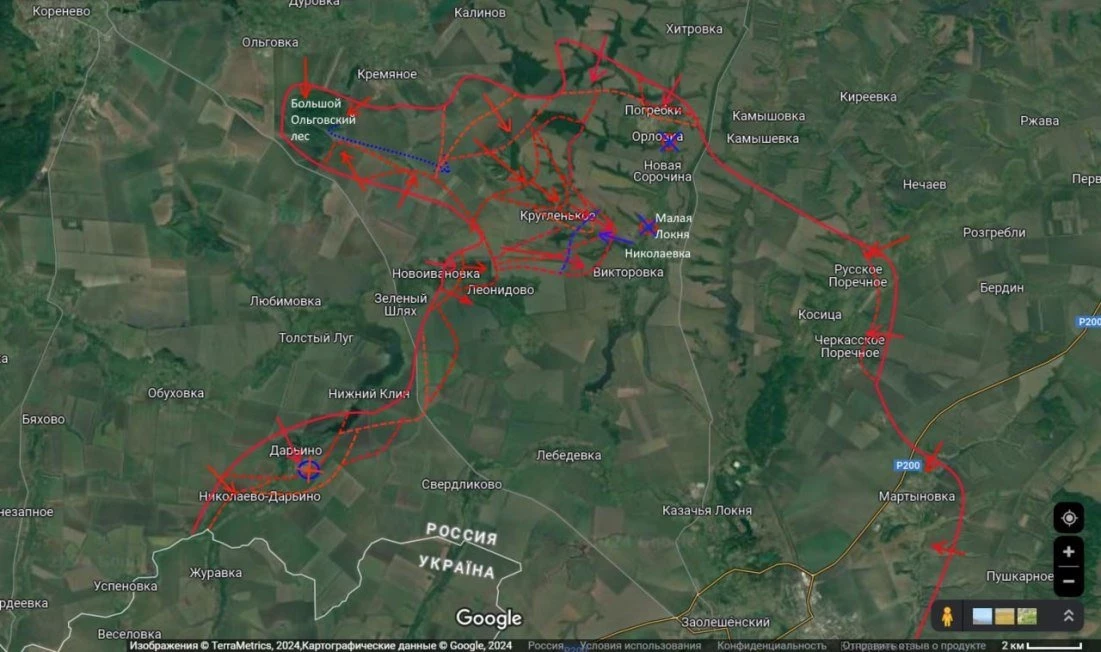 В Курской области военные ВС России ведут бои у Леонидово и в основной части Александрии, Кругленькое. Также штурмовые действия ведутся на подходах к населенному пункту Викторовка. Об этом сообщают военкоры.