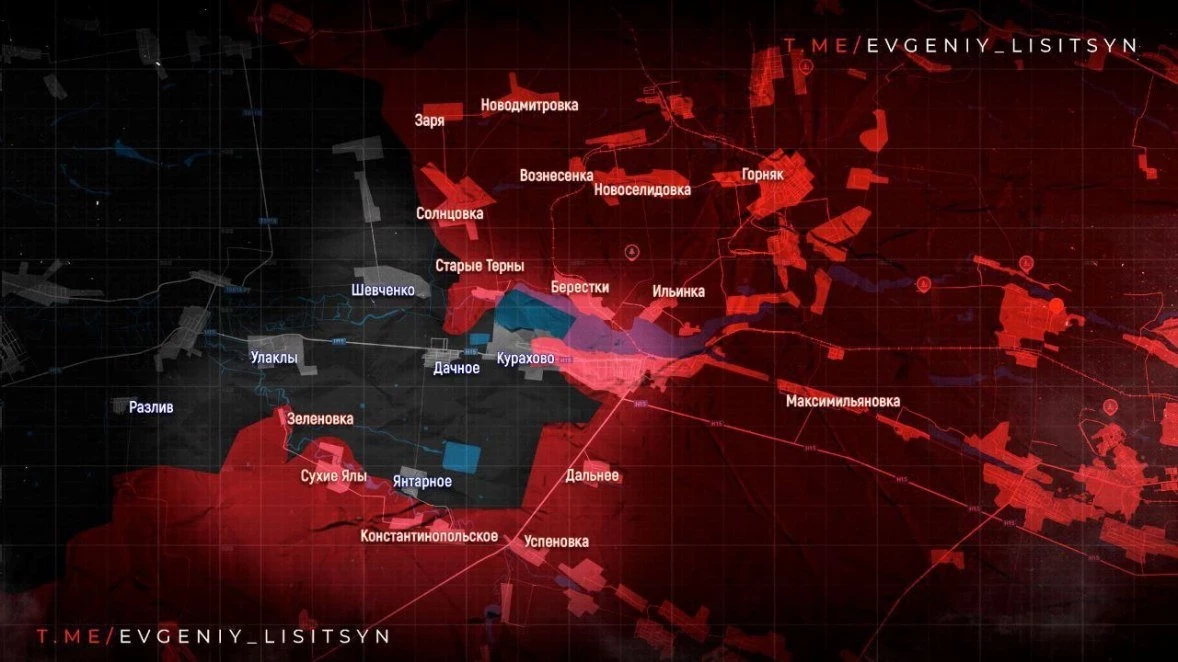 На Кураховском направлении идут бои за Янтарное и Кураховский трубный завод. Также российские штурмовики подошли к Андреевке, а чуть севернее идут упорные бои за Петропавловку.