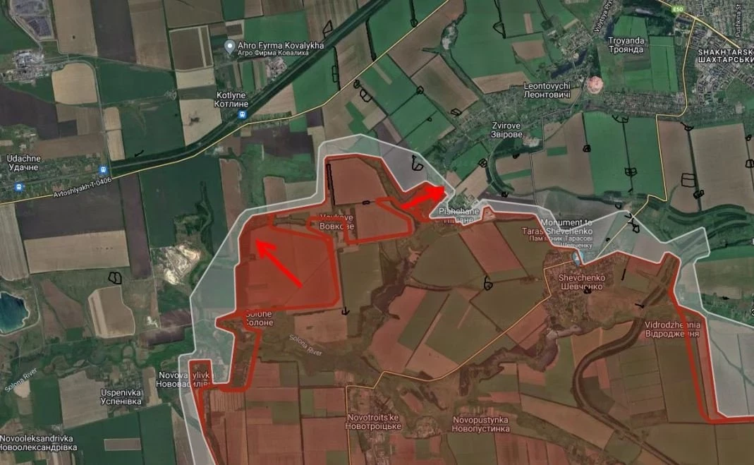 В Песчаном ВС РФ имеют тактические успехи в северной части, продвинулись на глубину до 350 м. и продолжают давить в восточном направлении.