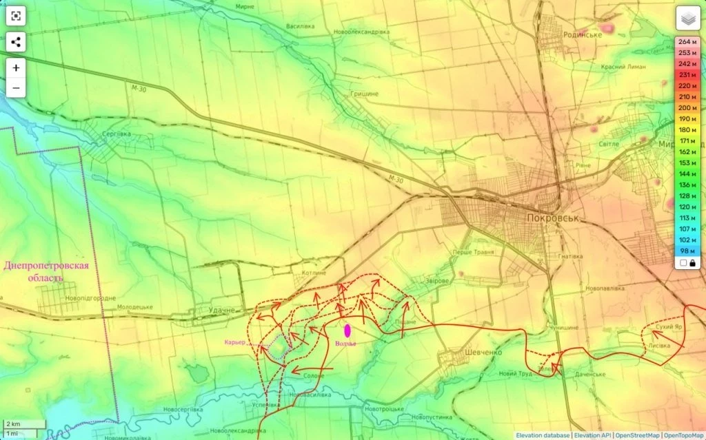 Наступление стало возможным после тяжёлых боёв за карьер, где подразделения ВС РФ сумели сломить сопротивление украинских войск. Это продвижение является важным этапом в стратегии охвата Покровска с западного направления, что значительно осложняет оборону ВСУ в регионе.