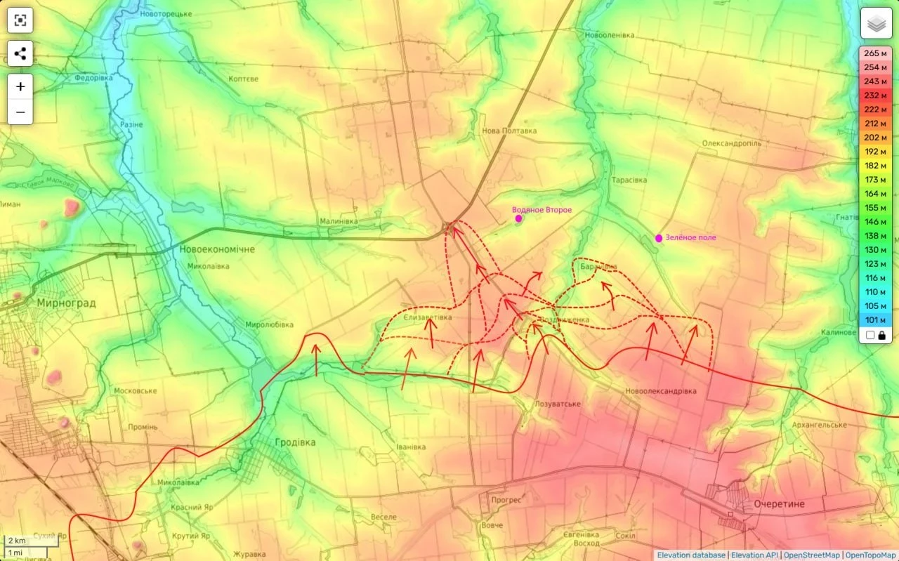 Таким образом фронт противника продолжает уверенно трещать и поддаваться назад, приближая нас сразу к двум целям - глубокому охвату Покровской агломерации с запада и … выходу к Днепропетровской области. До которой из занятой нами части Удачного осталось всего 5 км. А с западной окраины его будет и вовсе чуть больше 2 км.