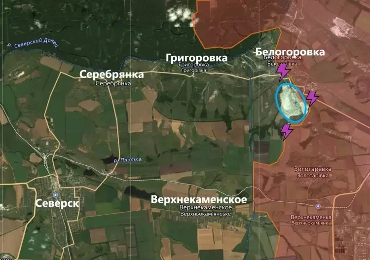 Сообщения о взятии белогоровского террикона подтверждения не получили. До сих пор приходят сообщения о том, что ВС РФ взяли высоту на отвале мелового карьера, но вновь без подтверждений. Известно, что наши бойцы атакуют позиции врага на терриконе с востока, а также пытаются выйти через юг к западным подступам. Однако, реализовать это пока что не выходит.