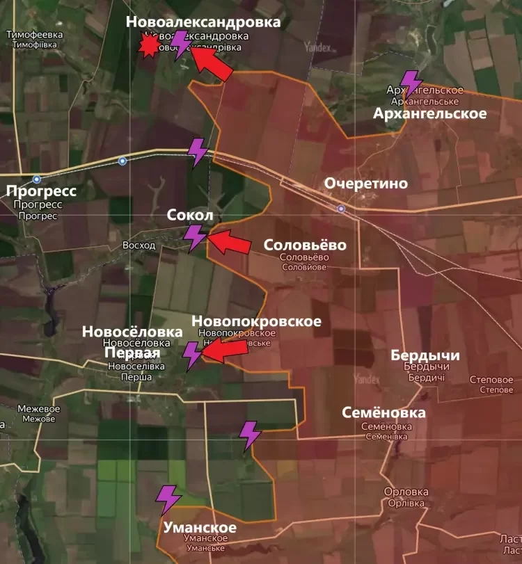 Под контроль ВС РФ перешел населенный пункт Новопокровское. Помимо этого, наши бойцы практически сразу расширили зону контроля и взяли несколько лесополос в окрестностях села, продвинувшись в том числе и на запад, в сторону Новоселовки Первой, сообщает PulsePen.