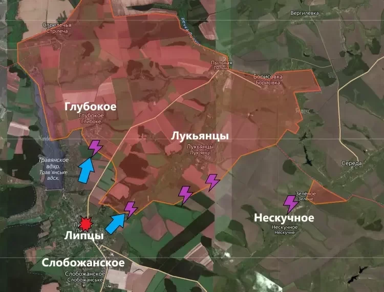 На западном участке продолжаются попытки ВСУ атаковать позиции ВС РФ в Глубоком. К счастью для нас, все они заканчиваются безуспешно - враг теряет часть бронетехники и личного состава, и откатывается назад в Липцы. Также с Липцев идут атаки на позиции ВС РФ северо-восточнее населенного пункта, где враг также не имеет успеха.