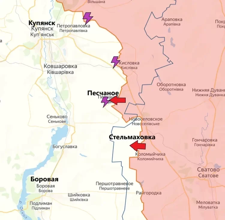 На Купянском направлении продолжаются бои севернее Петропавловки. О продвижении ВС РФ за последние сутки не сообщалось.