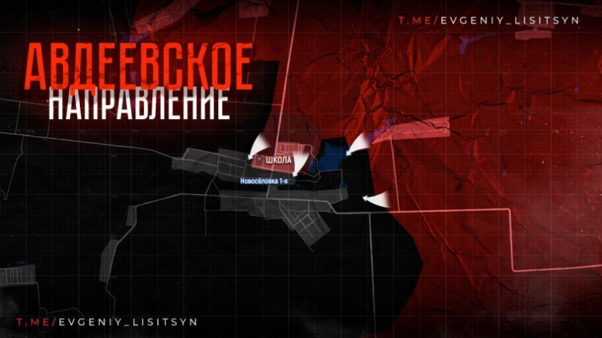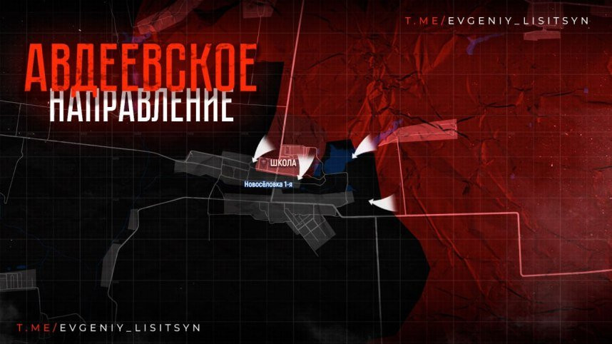 На Авдеевском направлении российские штурмовики продвинулись на рубеже Новоалександровка - Лозоватское, взяли под контроль большую часть Евгеновки и ведут бои на северных и восточных окраинах Новоселовки Первой. Поселок практически полностью под контролем российских войск, но зачистка продолжается от малых групп противника. Есть продвижение к поселку Волчья и к западу от Евгеновки. Фронт медленно движется на запад, есть подвижки в направлении Прогресса. Продвижение идет к северо-восточным окраинам села со стороны Новопокровского. Дорога снабжения гарнизона находится под частичным огневым контролем.