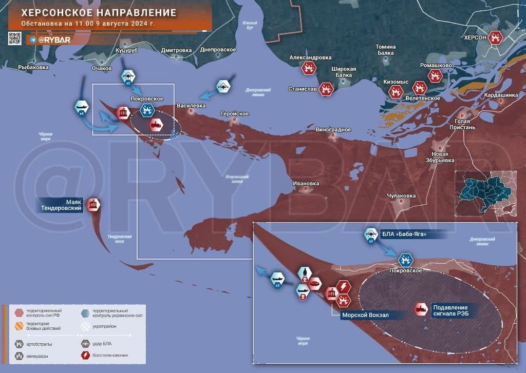 Новая карта боевых действий в зоне СВО на Украине от 10 августа 2024 года