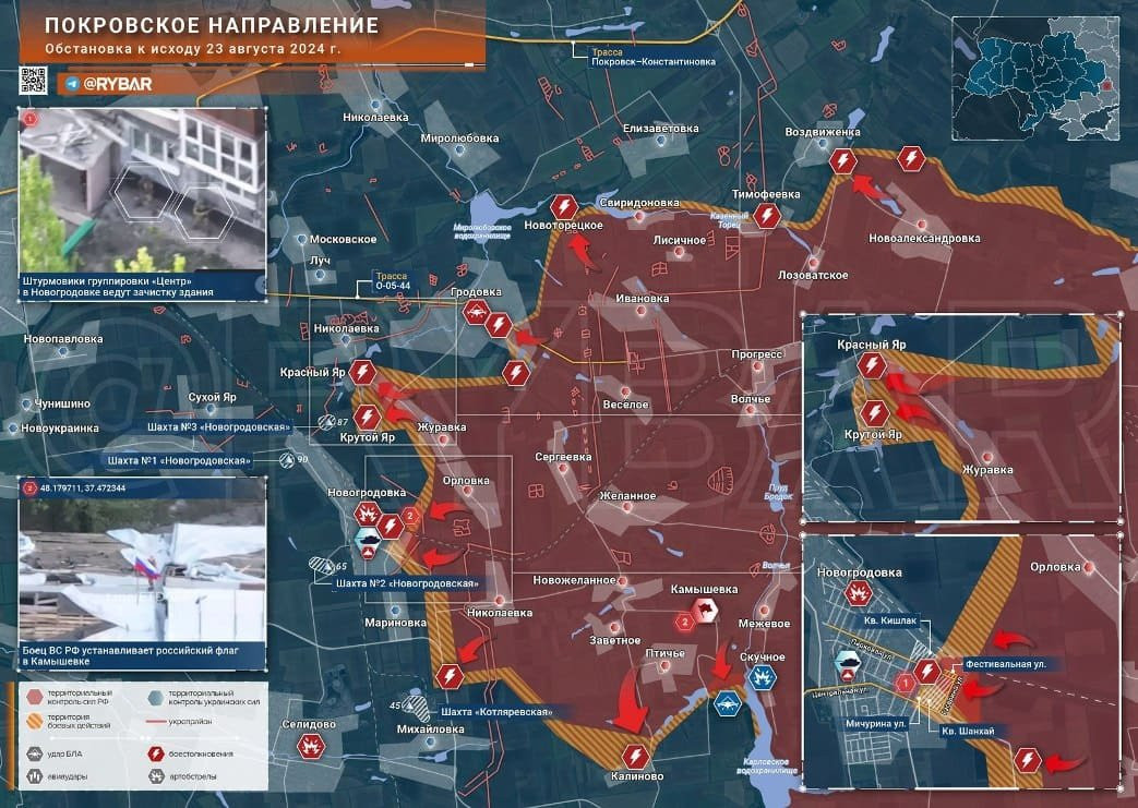 Новая карта боевых действий в зоне СВО на Украине от 24.08.2024
