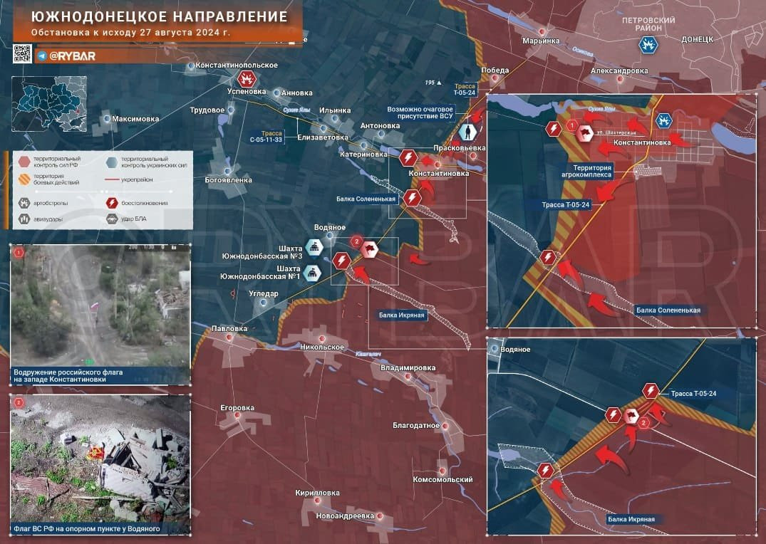 На Южнодонецком направлении российские войска освободили Константиновку, и установили российские флаги на южной и западной окраинах населённого пункта. Ведется зачистка территории.