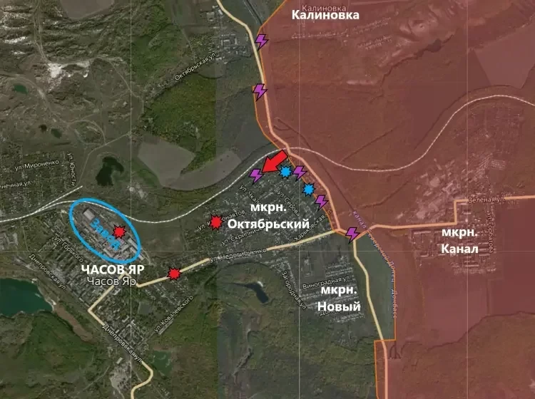 На Константиновском направлении продолжается штурм Часов Яра. Наши бойцы по-прежнему находятся на восточных окраинах микрорайона Октябрьский. Российские войска время от времени пытаются продвигаться малыми группами, однако пока без особых успехов.