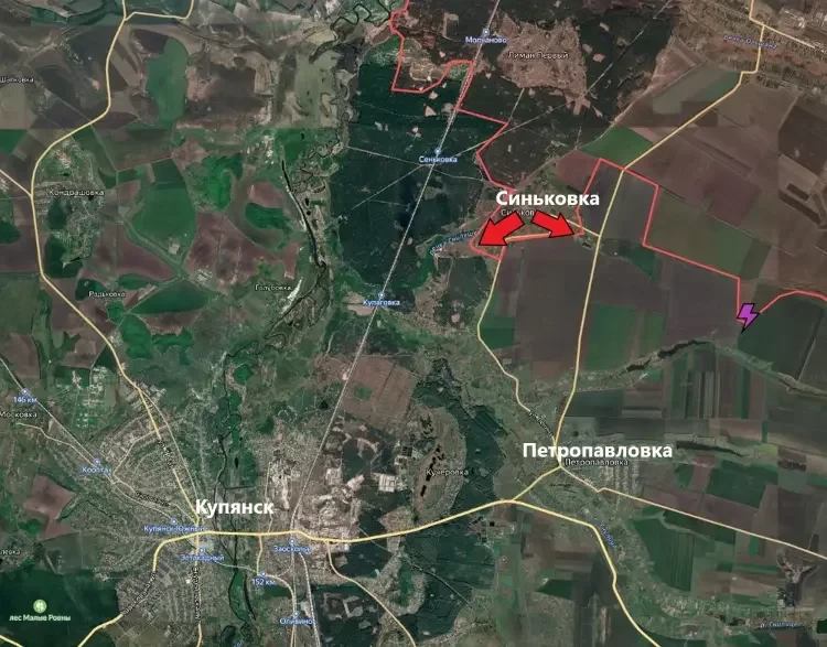 Купянское направление. С мест о том, что окраины Синьковки зачистили полностью. К западу от Песчаного продолжается медленное тяжелое продвижение к реке Оскол.